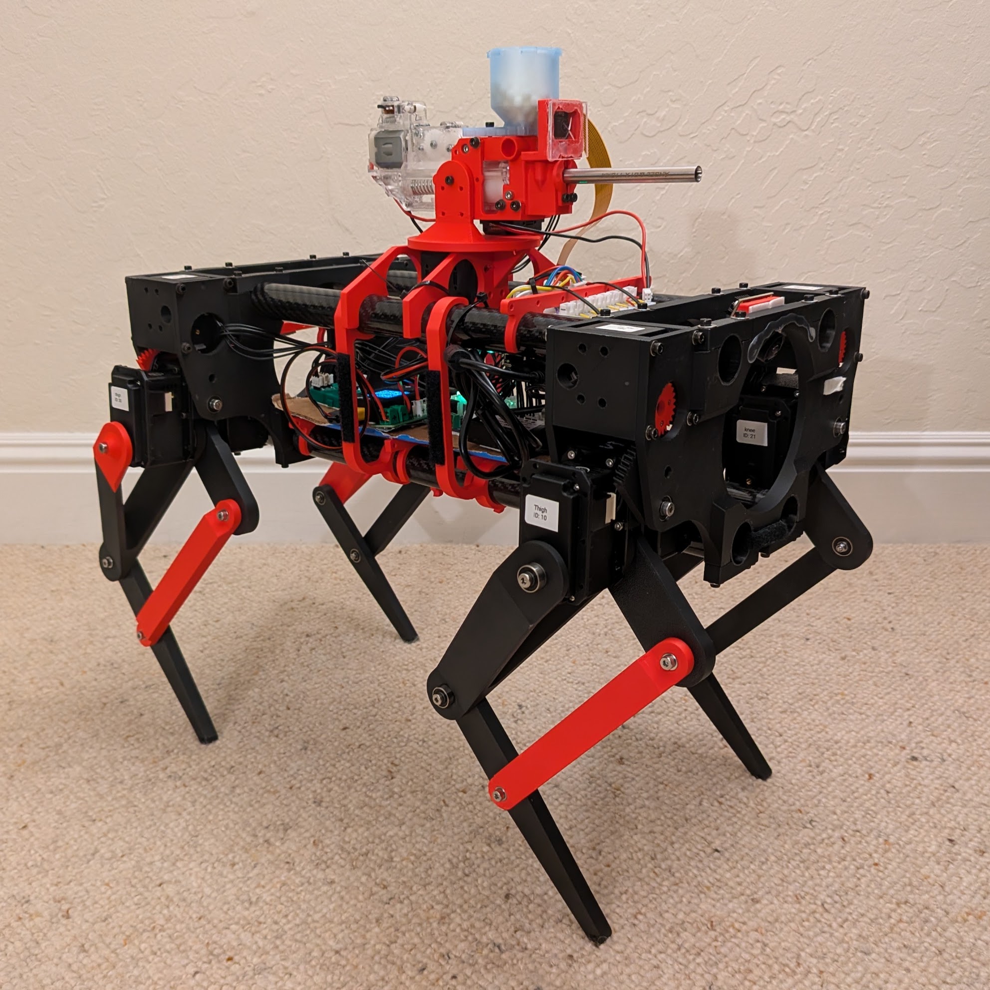 I designed and built a quadruped robot dog from scratch this summer for a 'Mech Warfare' airsoft battlebots competition.